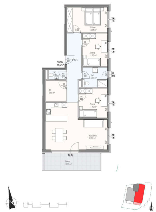 Erschließung über ein barrierefreies innenliegendes Stiegenhaus
