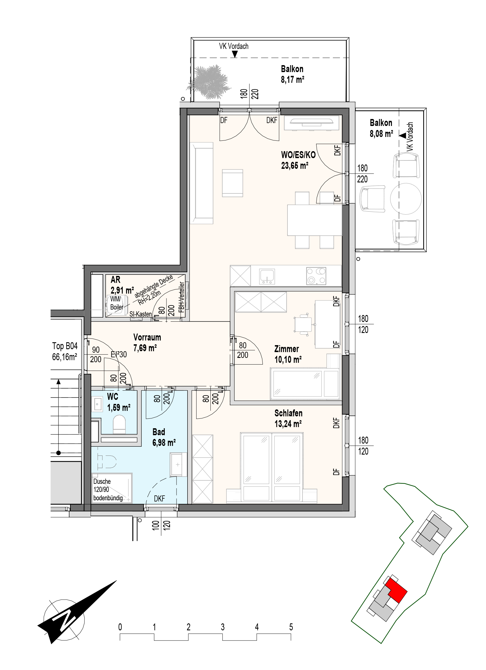 Balkone im Obergeschoss und Terrassen im Dachgeschoss